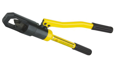 3、  將回油開關關緊,然后扳動活動手柄,使柱塞泵開始工作,使油壓上升,大活塞將刀刃推進進入工作,會發出“啪”的一聲即可。